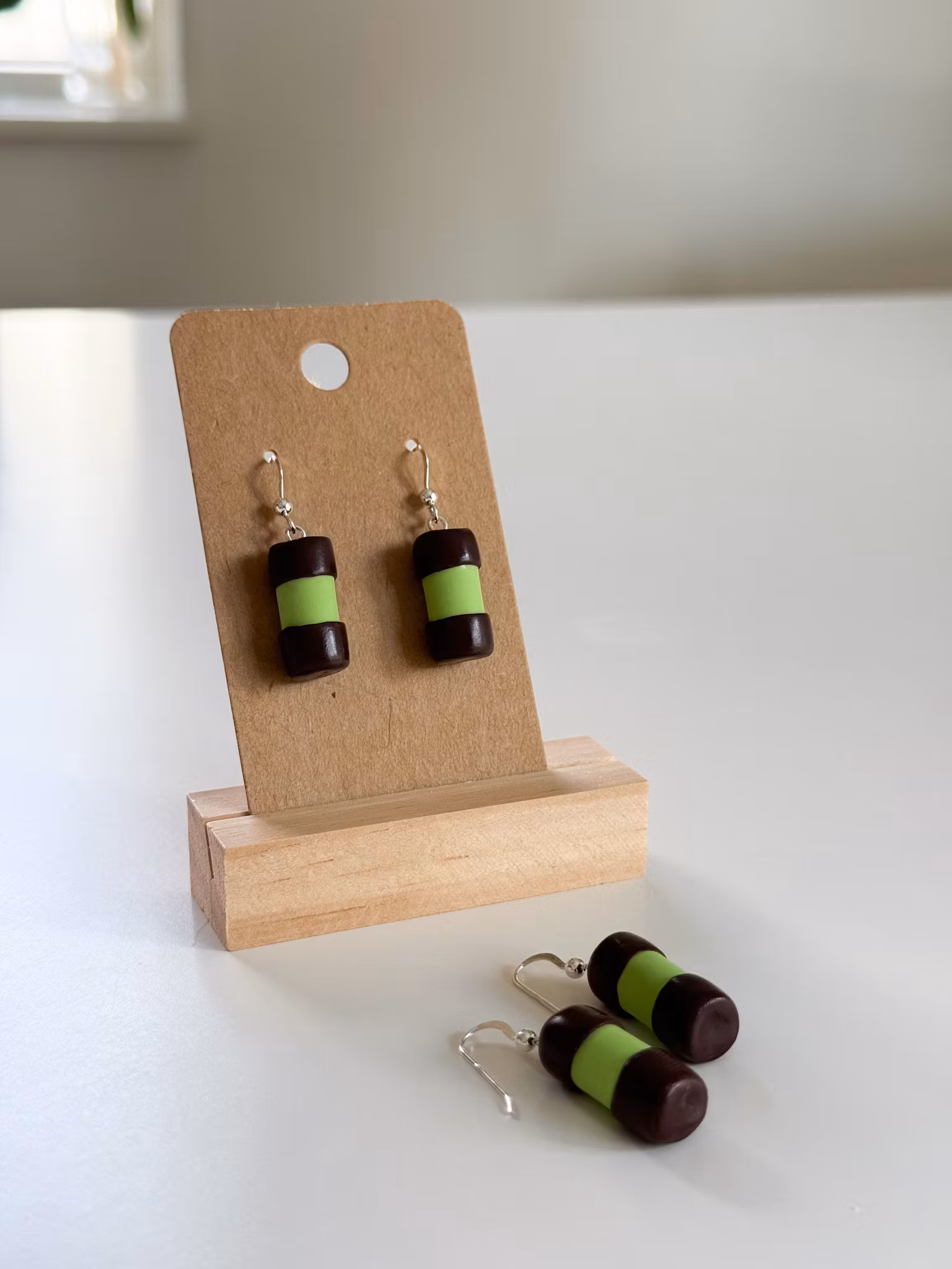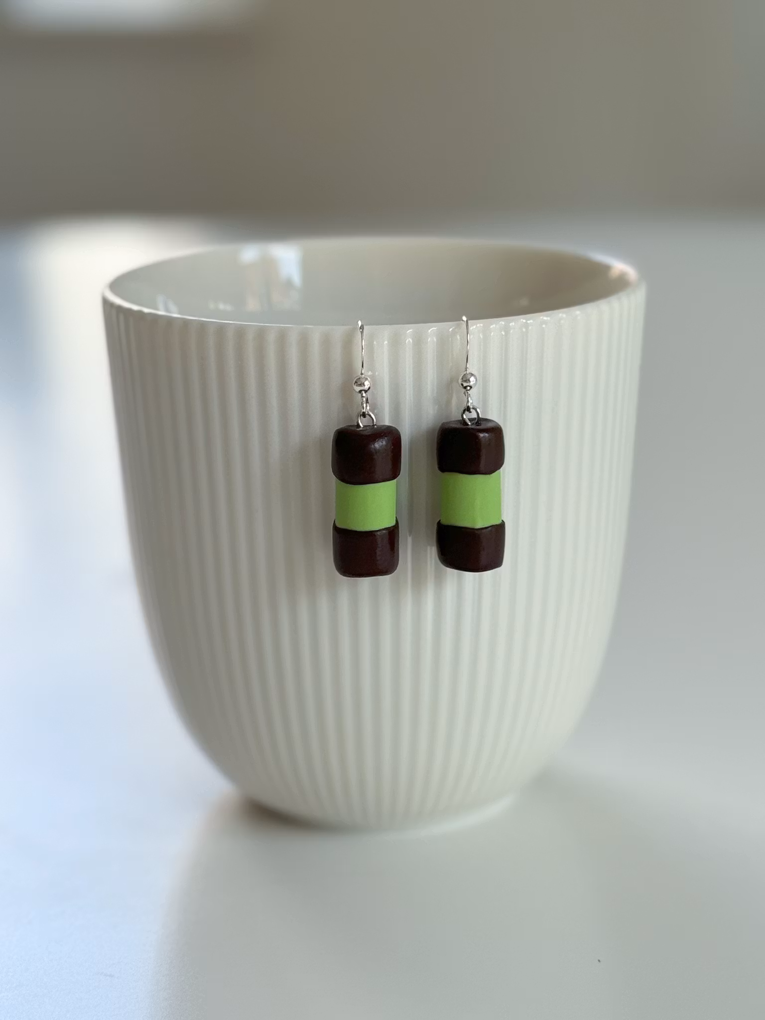 Örhängena är handgjorda av mig i polymerlera